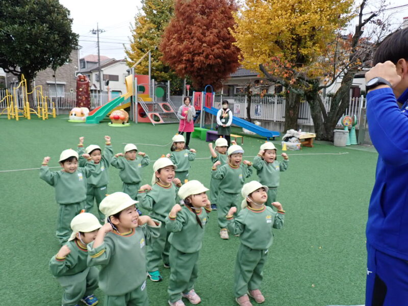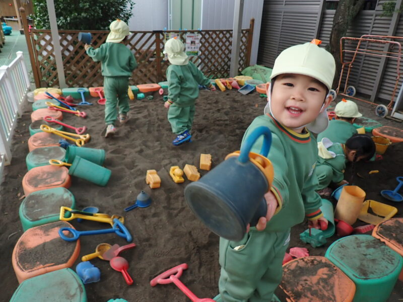 体育あそびの後は、手洗い、水分補給をして、お外遊び♪