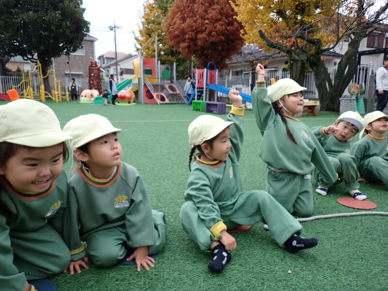 おともだち「はーい✋」と言う事で、順番で3周行いました。ジャンプしながら、みんな良い笑顔❤