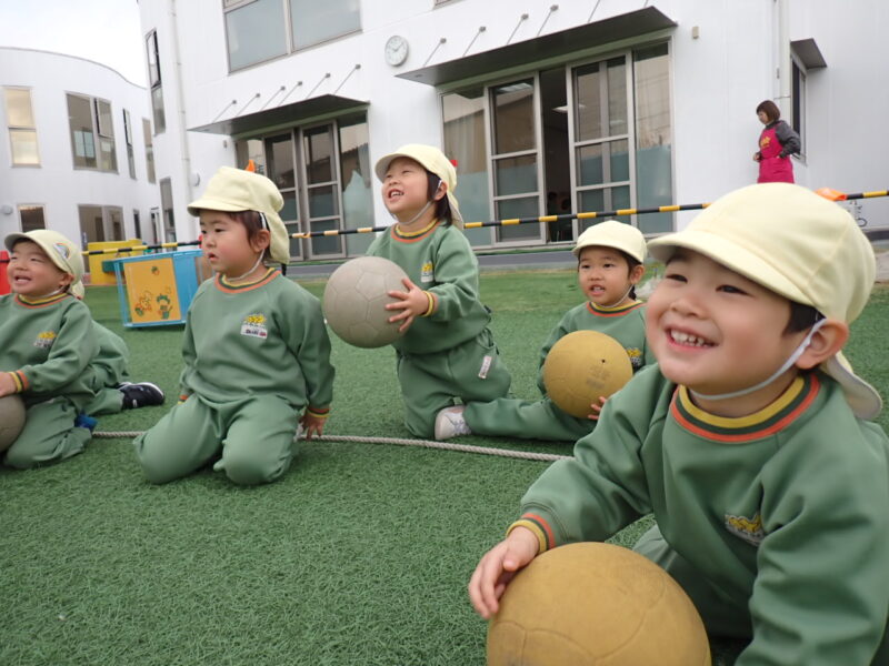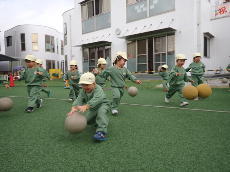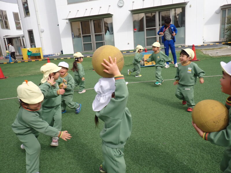 今回も引き続きボール運動。竜﨑先生が投げるボールが高ーく上がるので、みんな「凄ーい!」