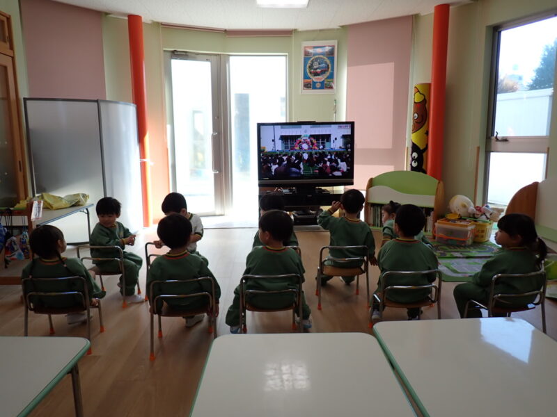 ↓ お家で見たかもしれませんが、改めて皆で頑張ったみかん組さん発表を見よう!と、上映会を行いました☆