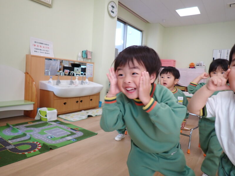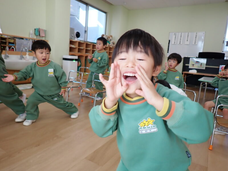「ね、ね、ねこがね~を頑張ったよ。」「あとね、やまびこさんも!」「トンボも!」と次々と声が。自分の中で「頑張った!」「出来た!」の意識が持てた事、素晴らしい~☆