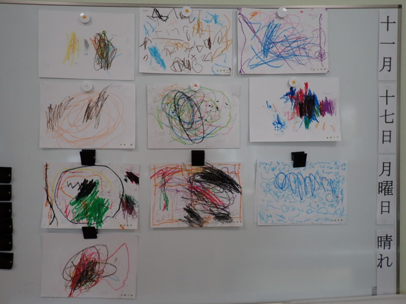 ↓ ジュースが美味しかった事、ポップコーンをお外で食べた事、新幹線が楽しかった事、それぞれに、思いが詰まった絵が描きあがりました!