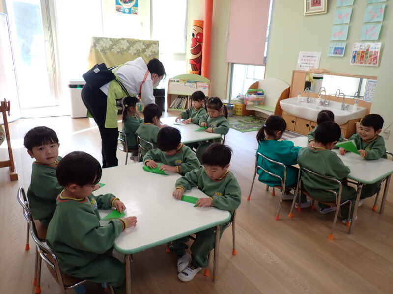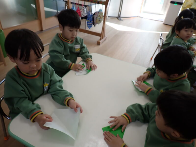 最後の少し折り上げる所が難しかったかな。しかし、みんな自分でやろうと頑張っていました☆