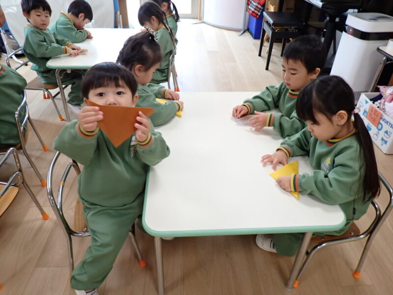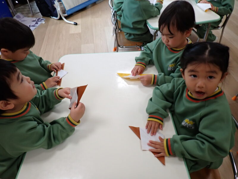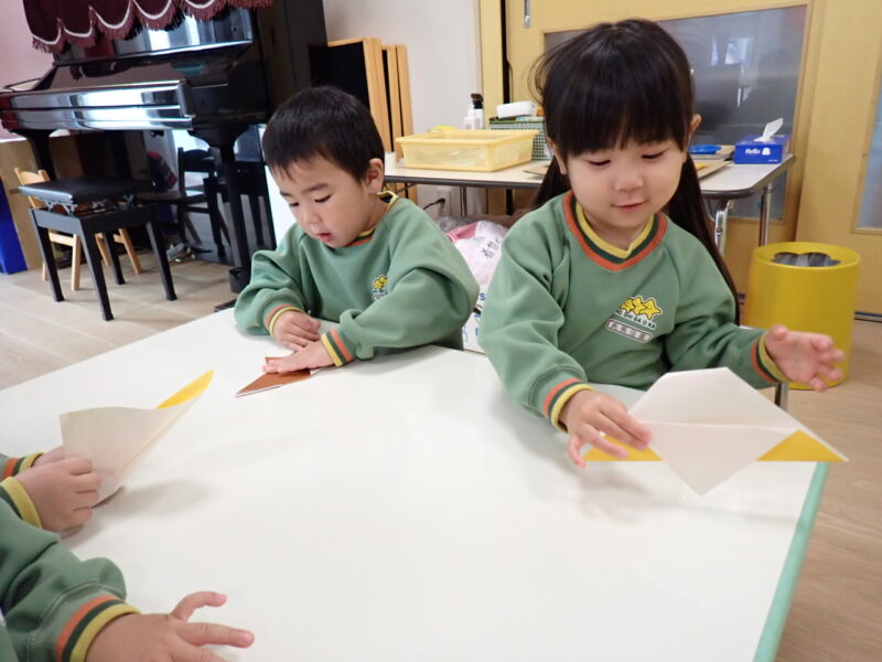 折り方がちょっと難しいんだけど、やってみる人?と聞くと、大きな声で「はーい✋」のお返事が返ってきました。