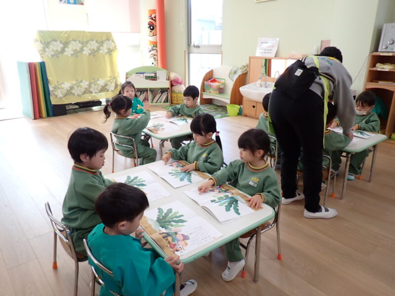 漢字あそびは『大きな蕪』の本読み。一人一冊の絵本を使います。自分の絵本って何だが嬉しいね❤(*^_^*)