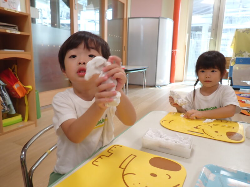 朝の自由遊びは粘土遊びが大人気☆