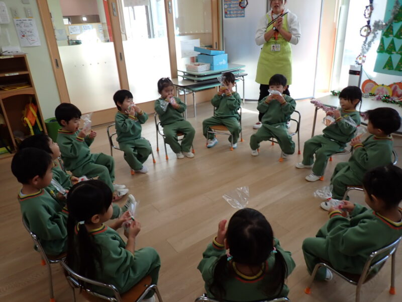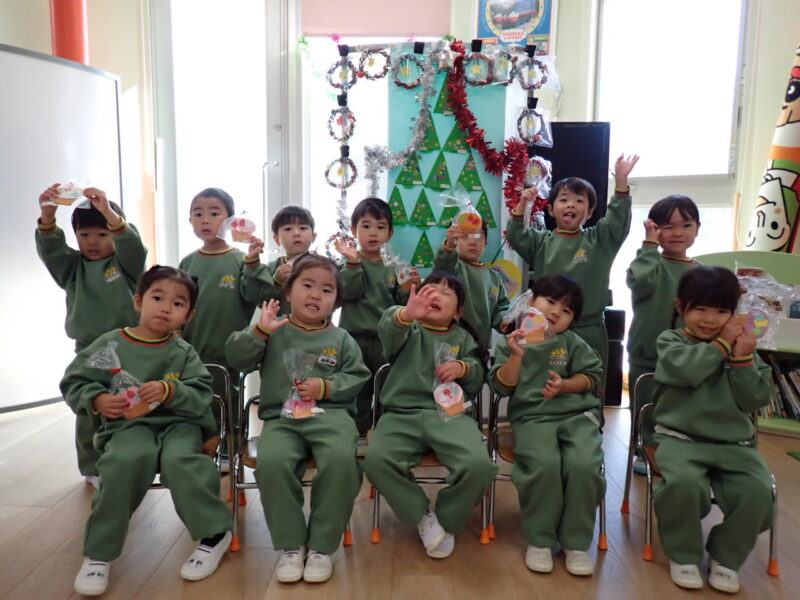 先週、クリスマス会の計画をしていて「クリスマスには何が必要かな?」と問いかけたところ、「ツリー」や「リース」の意見と共に「ケーキ♪」の声が多数!