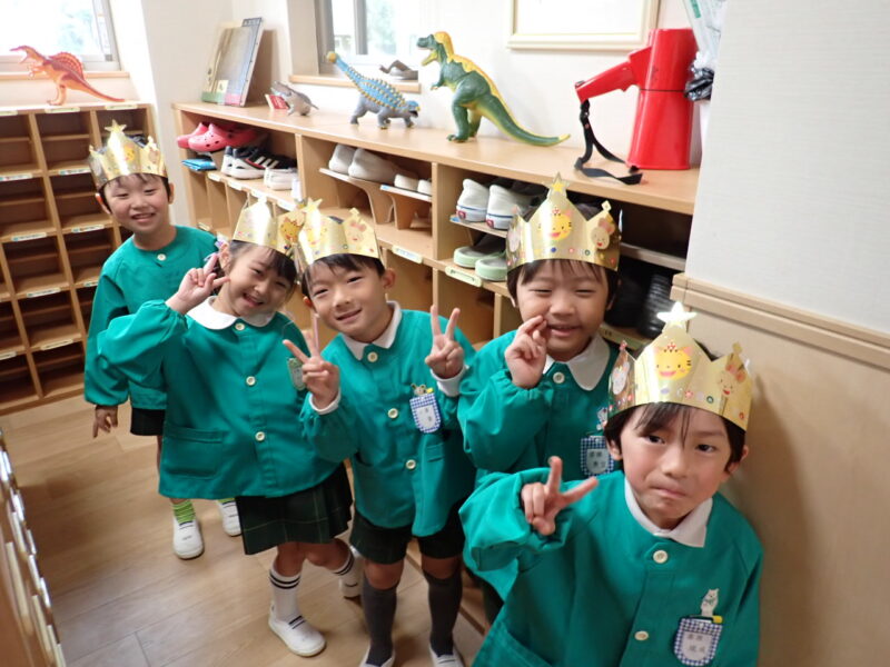 10月生まれの4名のおともだちと8月生まれの1名のおともだち(お休みで誕生会に出れなかった為)が6歳を迎えます!