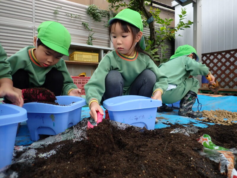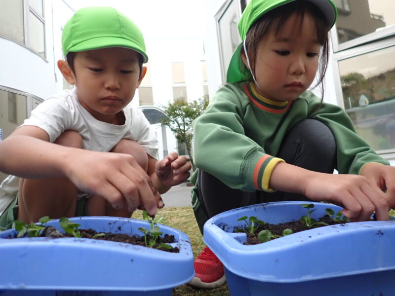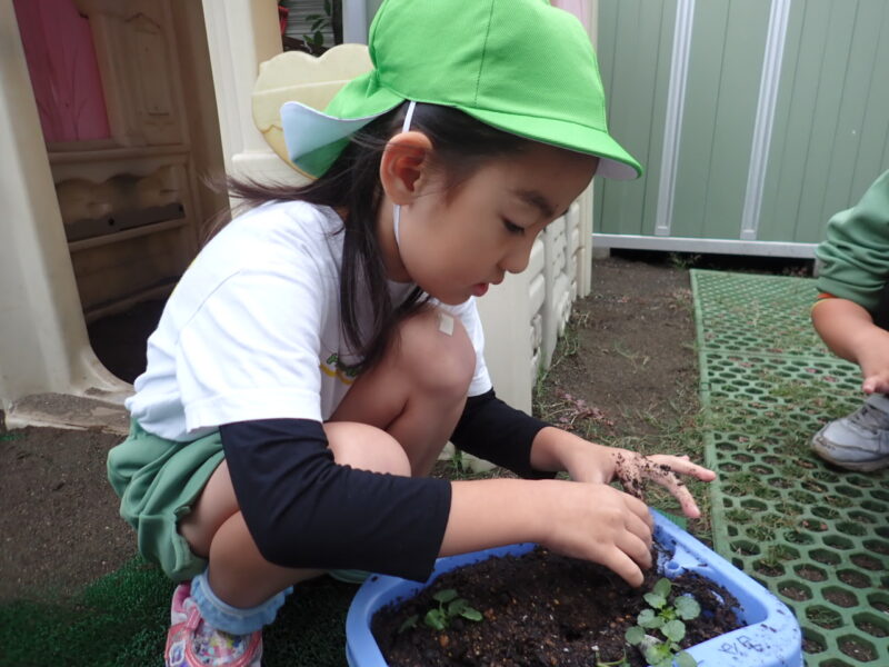 ⑤しっかりと根付くように、指でギュッギュッとしたよ!
