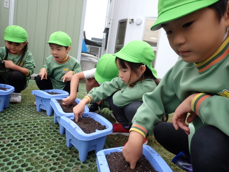明日から、天気や土の様子を見ながら、水やりをしたり、お世話をして、【卒園式】迄に綺麗なお花が咲くといいね✨