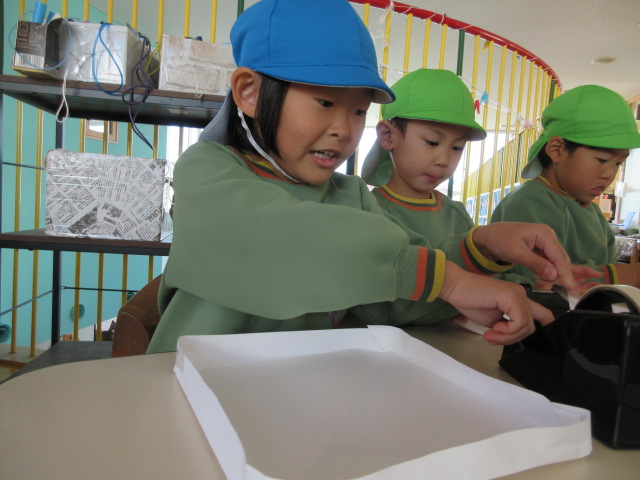 2日前から作っていたリースが完成(予約をしたお友だち)。ボンドが乾いたお友だちから、お道具袋に入れて掲げる様にしてお持ち帰りしました。(リースのケースも手作り→1キッゾゲット出来て嬉しい!)5キッゾと高額でしたが、出来上がりにご満悦。クリスマスに飾って下さいね!お道具箱の蓋は、明日お持ち込み下さい。