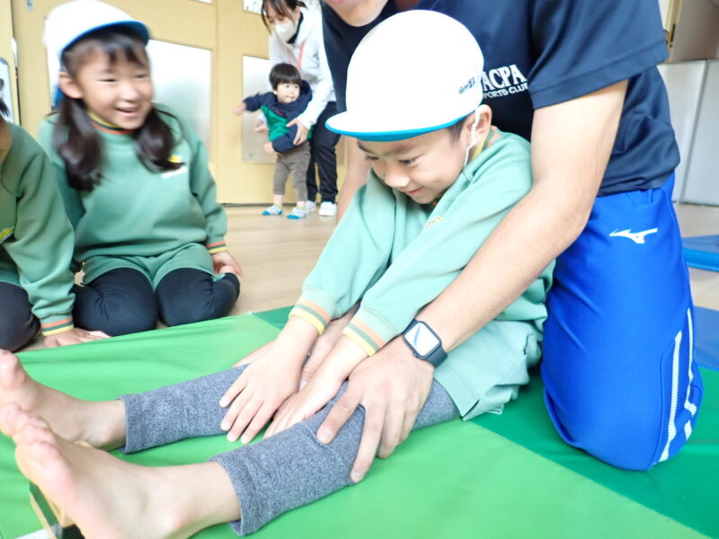 今回は、「マイナス」がいなくて良かったです😊。「腰をさすっておくといいよ。」とアドバイスすると、お友だち同士でさなかをなでなで・・・。大塚先生に膝が曲がらない様に抑えて頂いて計測した後に「いててて~っ(>_<)」と、太腿の後ろを抑えて大笑い!(その痛みわかる・・・担任)。