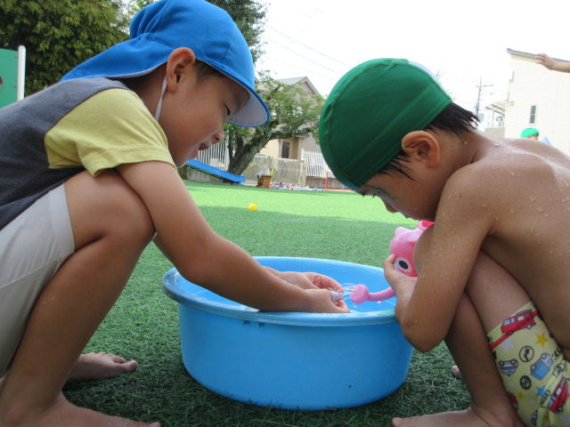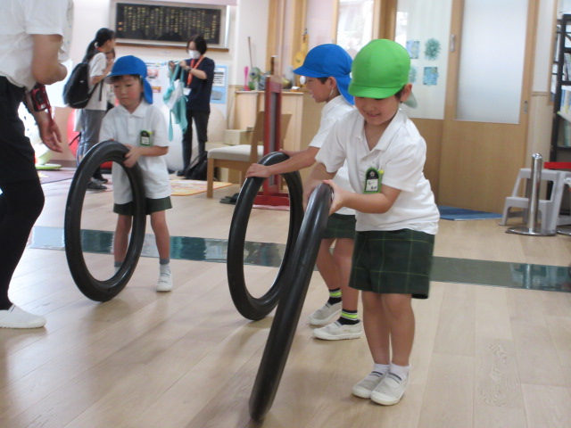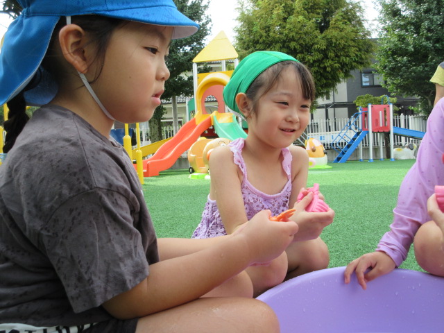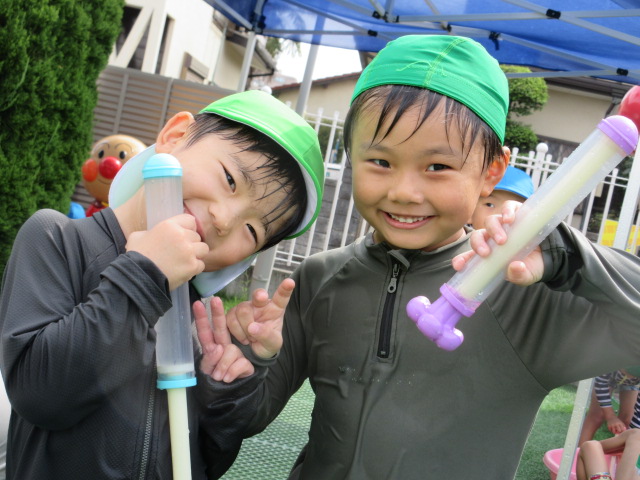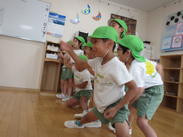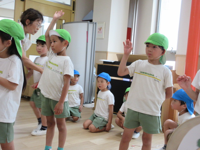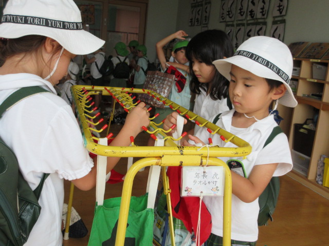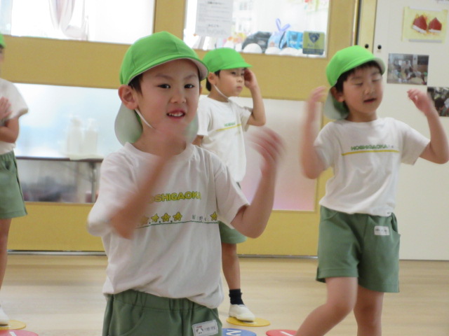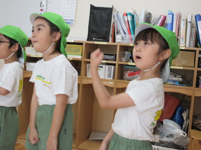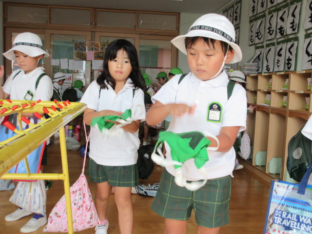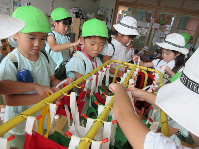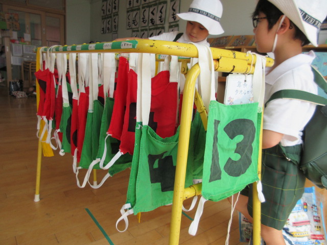 *夏スモック・体育着持ち帰っています。汗をいっぱいかいたので、組帽子も持ち帰りました!