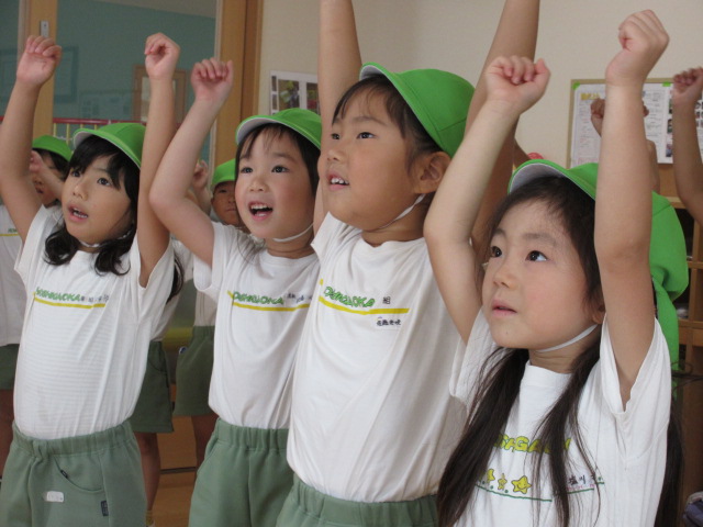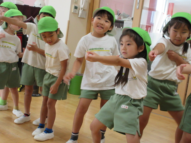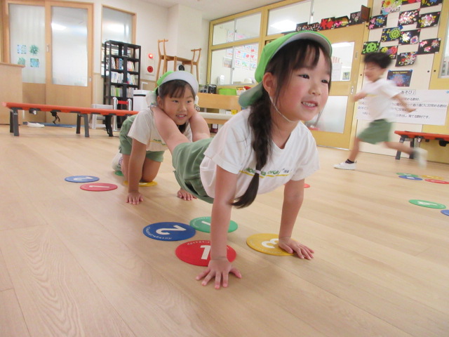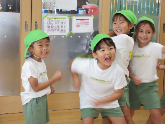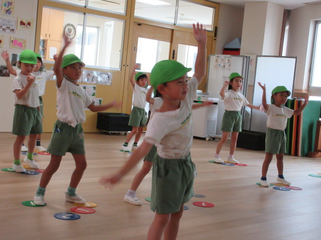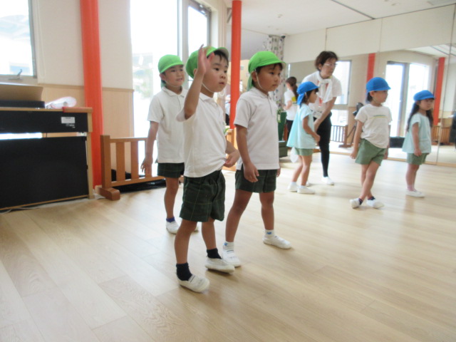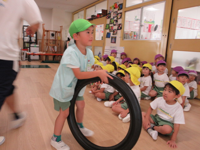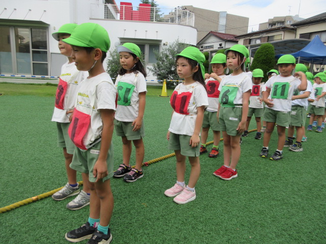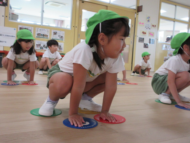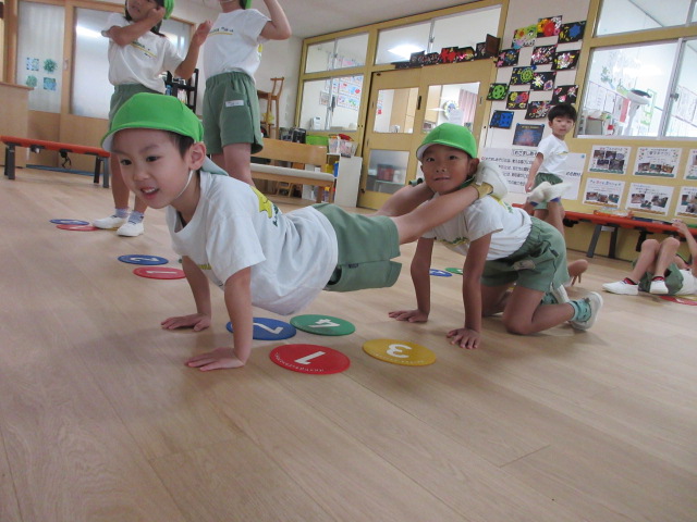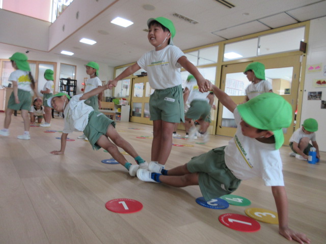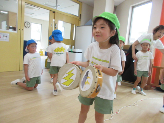 ホールで、年少・年中組さんのかけっこのお手伝い🎵