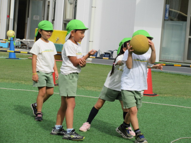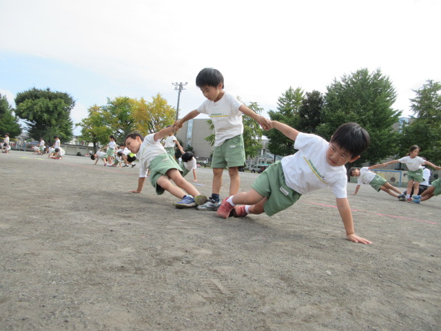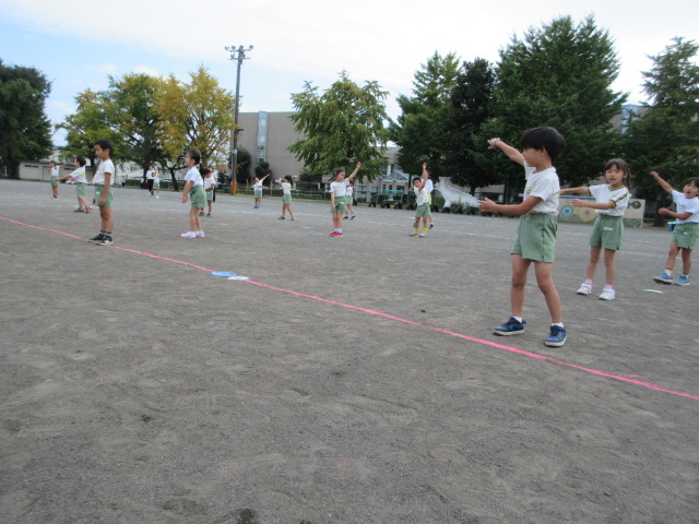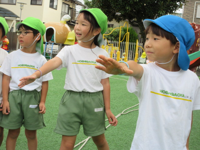 園庭と校庭では、全然、間隔が違う!!校庭で出来てよかったね~~!!