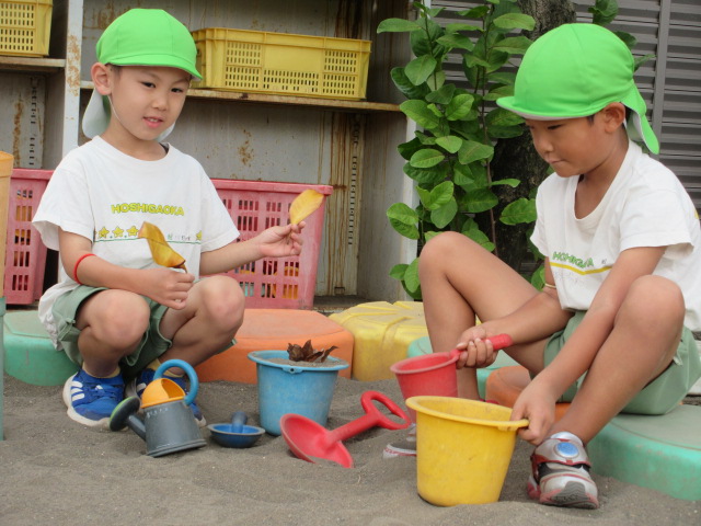 お砂場で植木鉢だよ~~!!葉っぱのお花が咲いたんだって🌸