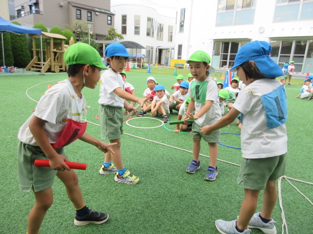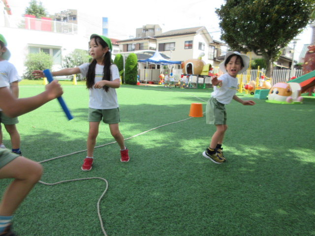 朝の外遊びタイムで、バトンゾーンの使い方の復習~!練習すればした分だけ、上手になったね✨