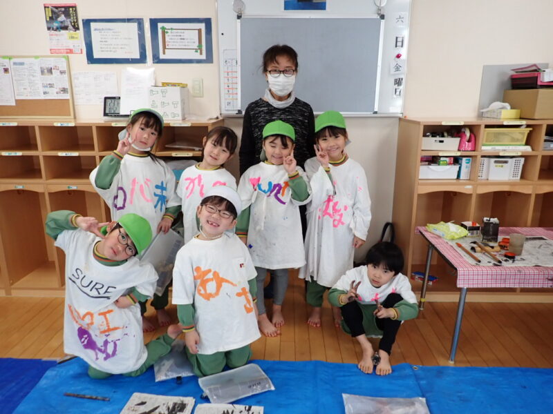 最後の授業の文字は、『いのち』。この1年で、”何を書くか?”は、三浦先生が考えて、下さっていますが、年長組最後の授業で、生きていること、1人ひとりの”いのち”の大切さを考えてほしい!そんな想いがこもっています。