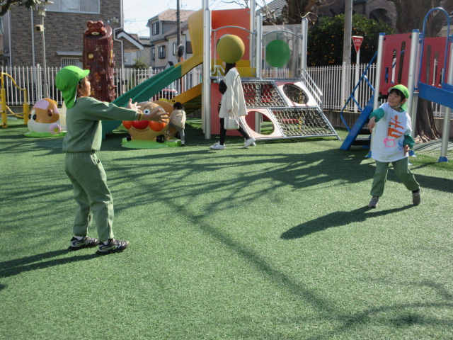 【キャッチボール】、お友だちが投げたボールを両手で”キャッチ”