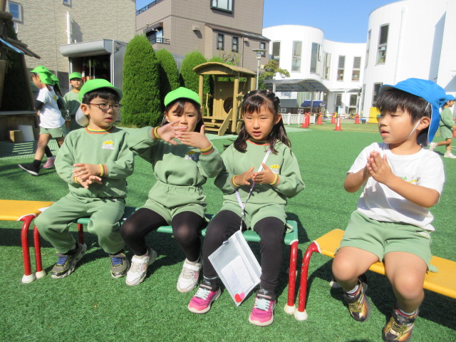 今日の帰りの集合時間に早めに戻ってきたお友だちに「時計見られて凄い!」と、声を掛けると、「だって、さっぴーと箭内先生がトランシーバーで話ししてるの聞いてたから!(笑)。」と。(ずる~い!笑。(いや、賢い!!)というと…)