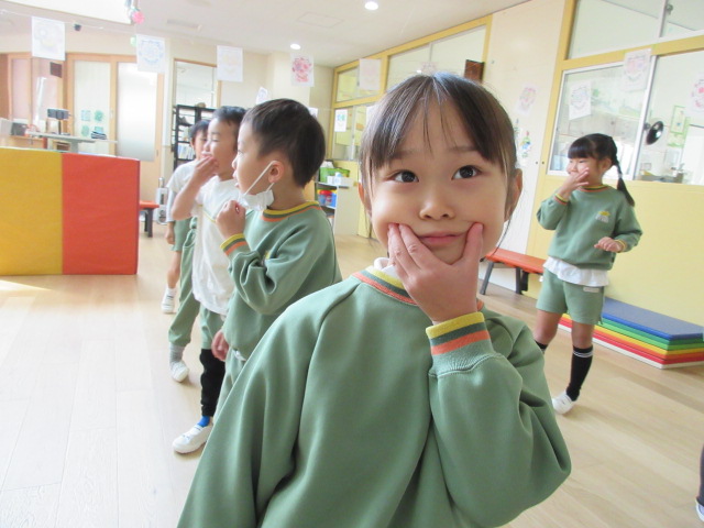 表情筋を動かして、体も大きく使って、どんな風に発声したら良いか?!目から鱗のポイントがいっぱ~い🎵(今日は、声が出ず…もどかしい担任の分もお友だちが元気に発声していました✨)