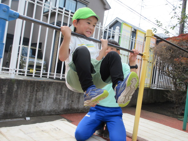 腕のチカラで、しっかり体を支えたり、逆上がりにもチャレンジしました!