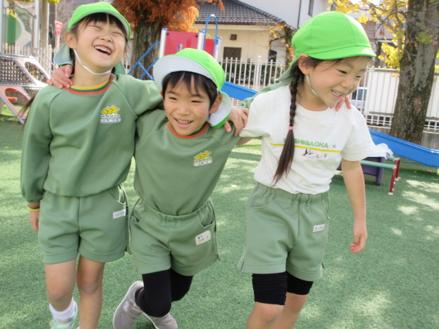 体育あそびをしていたら、お外がぽっかぽか☀だったので、緊急で…お外ご飯にしたよ~(^▽^)/(→『どこが、緊急なの?!』と、つっこまれつつ…♡)
