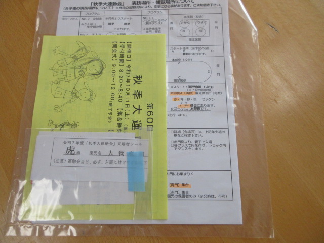 ①運動会プログラム ②お子様の演技場所について ③来場者シール