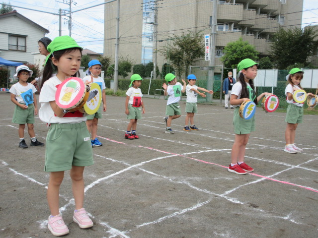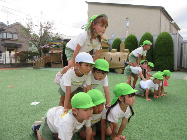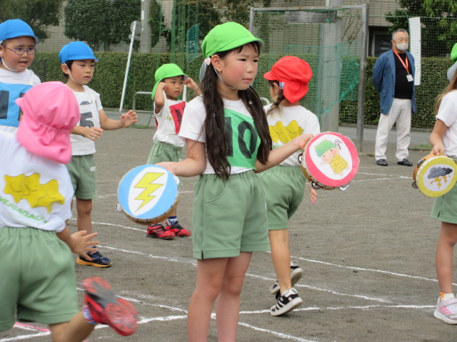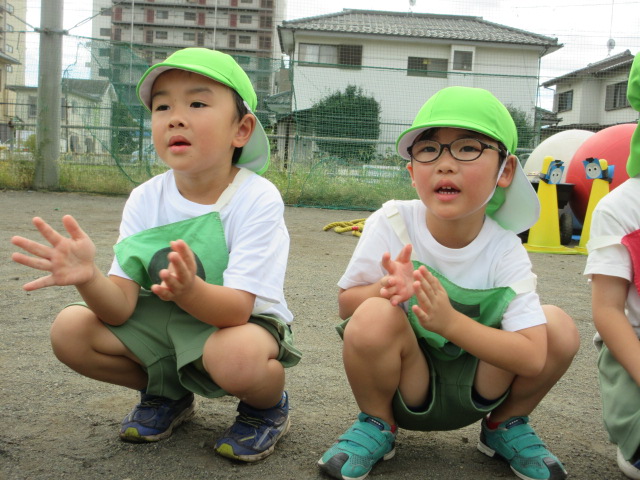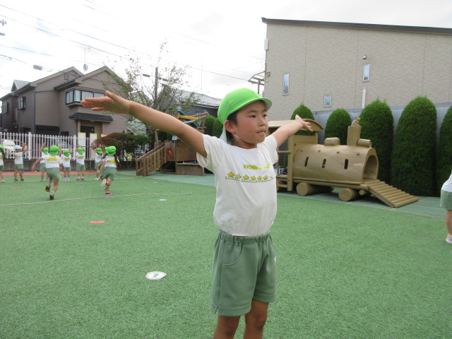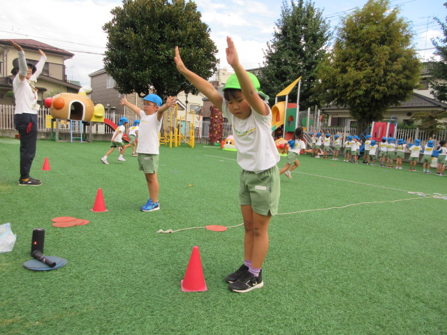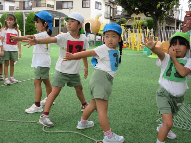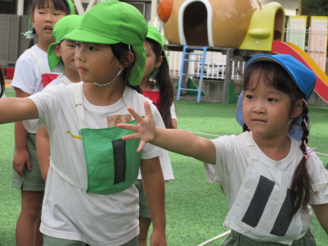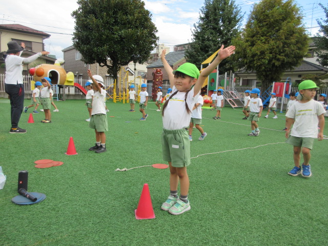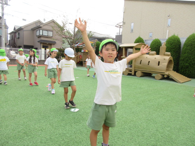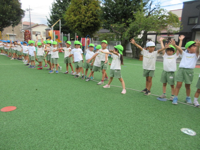 広場は、音楽が流せない為、園庭で【マスゲーム】