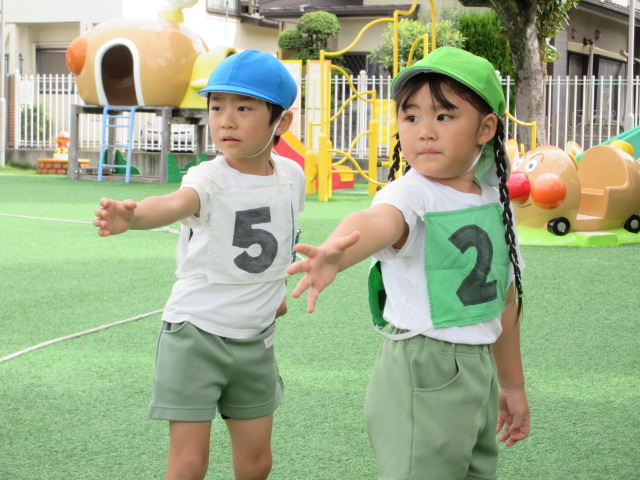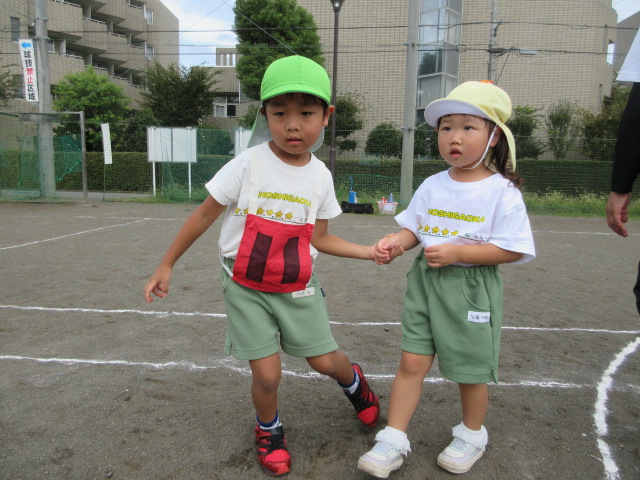 □ひよこ組かけっこのお手伝いのお友だちのリハーサル