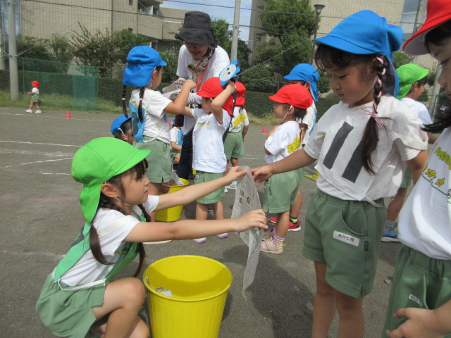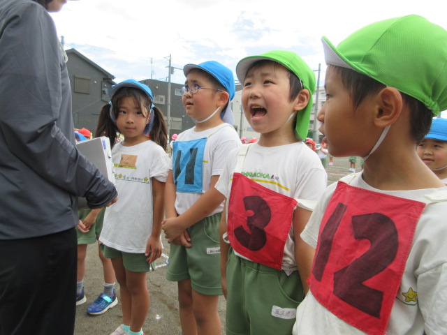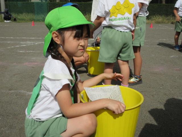 年長組は、各学年の種目のお手伝いもします!(本日、【演技場所について】を配布した中に、プログラムが記載されています。)