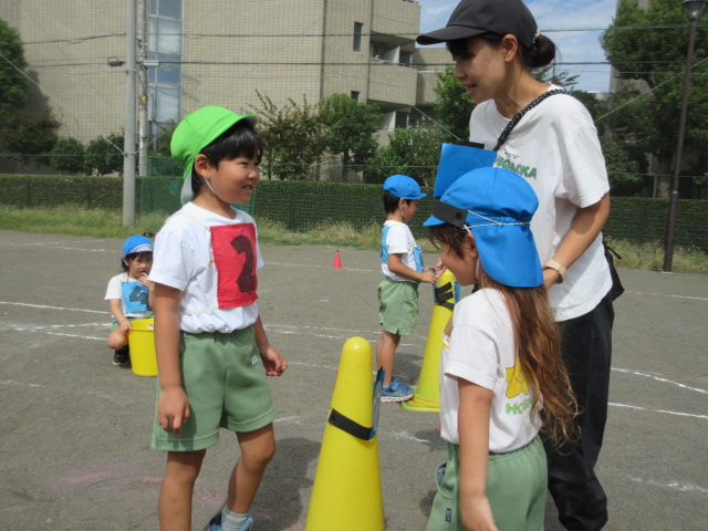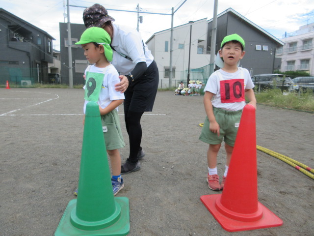 ②年少さんをゴール後、カラーコーン迄連れていくお手伝い🎵