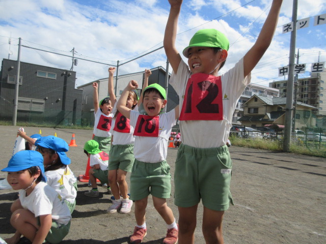 前回のリレーで4位で涙した赤ゼッケンチームに今日は、笑顔が(o^―^o)♡
