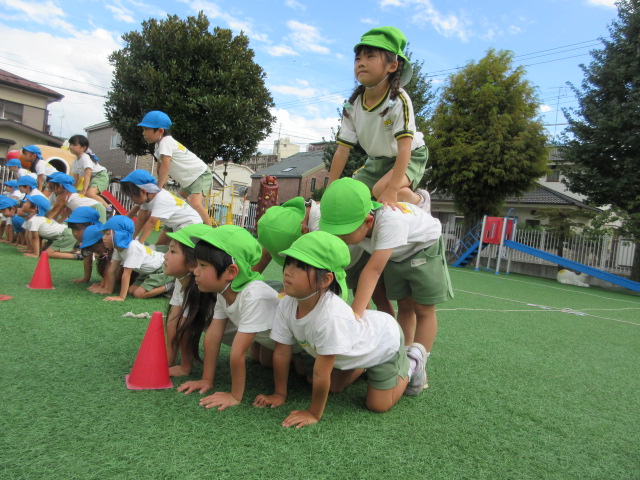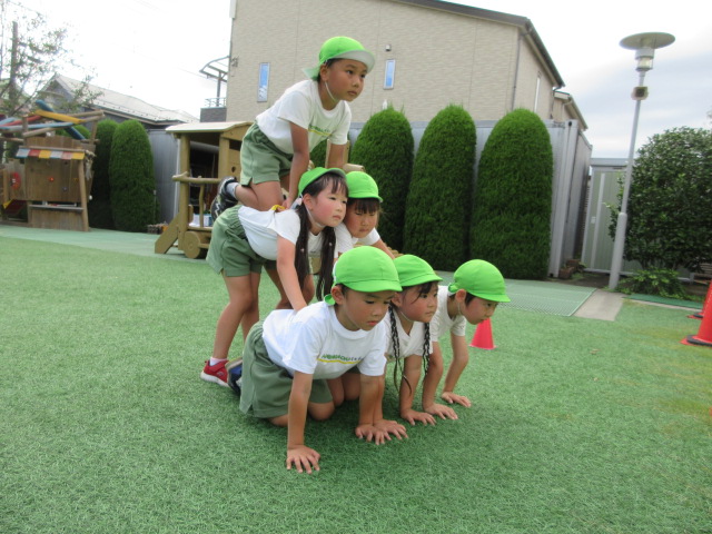 支えるお友だちの踏ん張り、上にあがるおともだちの勢いとバランスがマッチして、大成功のマウンテン🏔