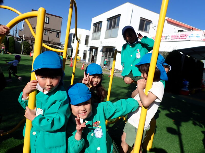 今日も快晴☼☼。風が冷たかったけど、おともだちは、元気いっぱい園庭で遊びました。モンキーツリーでは、裸足になって遊んでいましたよ👣。