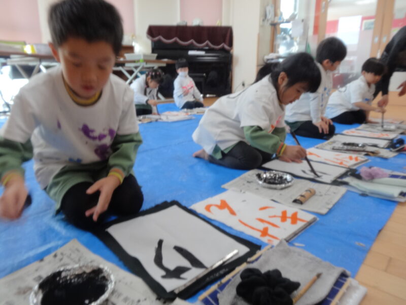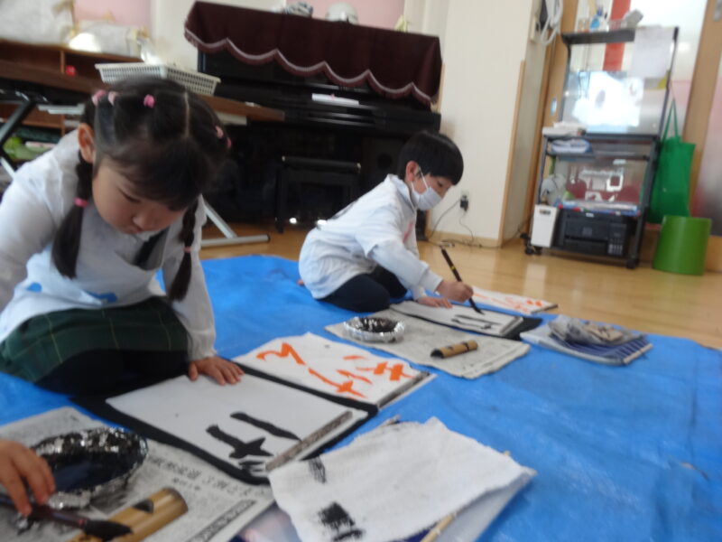 習字「げんき」・・・「素敵に書けた。」「大きく描けた。」と、三浦先生から褒めて頂きました。3文字のバランスも、考えられる様になって、半紙1面に伸び伸びした字になっています。習字もあと1回になってしまいましたね。
