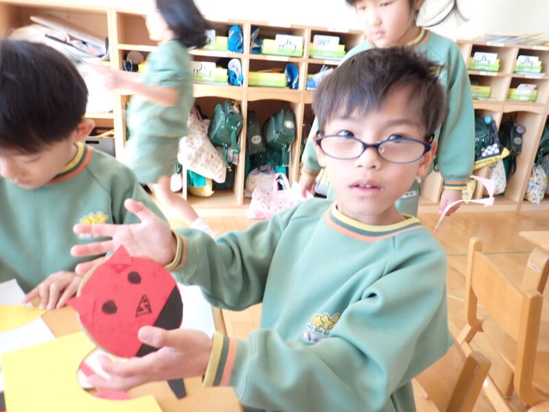 続きは、空いている時間を使って、箭内先生が「でんでん太鼓コーナー」で進めて下さいます。「1月29日までに仕上げてね。」とだけ伝えています。「自分で(お友だちと)進めないと出来上がらない。」というミッション。一人ひとりの取り組みが楽しみです。