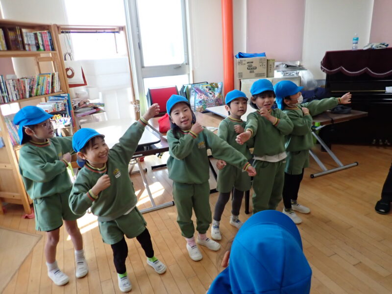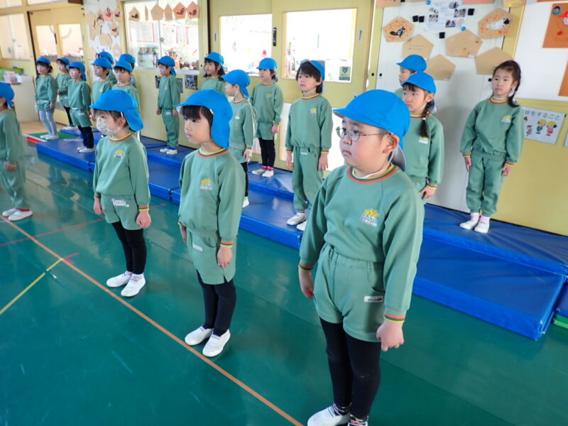 給食の前に、フィナーレの取り組み。年長さんの言葉もしっかり言えるようになりました。教室で、園歌の歌詞を間違えないよに取り組んできたので、「うん、いいね!」 成田先生から、次がんばること=堂々と歩く。客席の皆さんに、胸を張った姿を見せられる様に、取り組んでいきましょう。