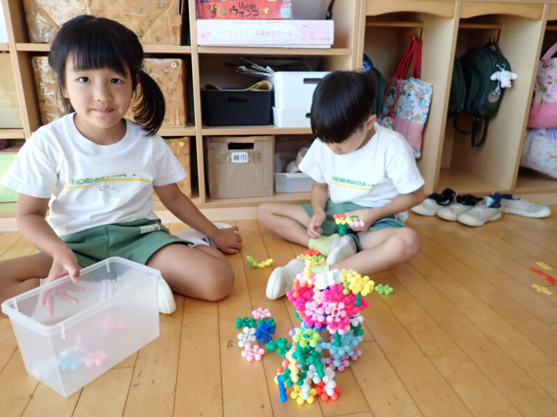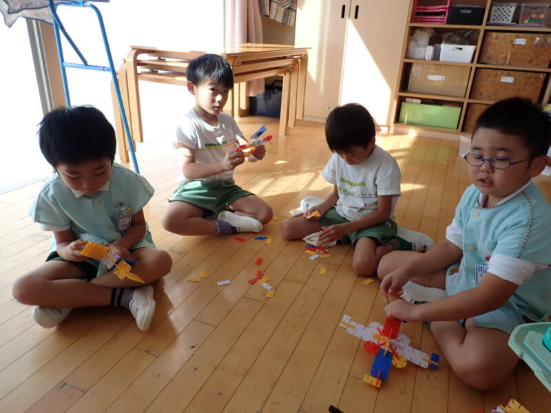 年中さんで使っていた時のブロックが、帰って来ました。年中さんの時より、レベルアップした作り方になっていてびっくり!