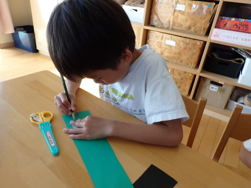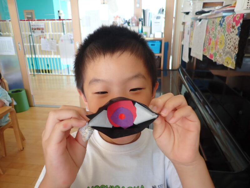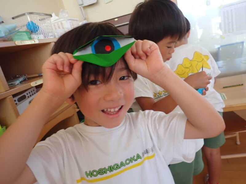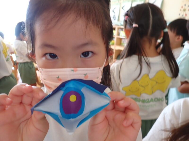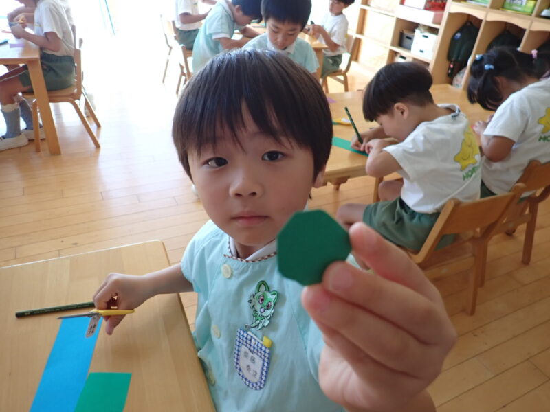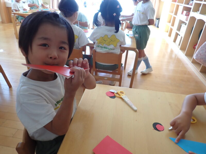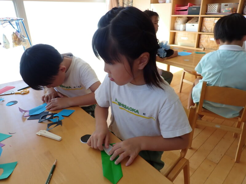 ちょっと難しい所は、線を引いてあげて・・・隣の机を見て、折り方をチェックしていたおともだち、「先生こうでしょ!」とどんどん進めていました。