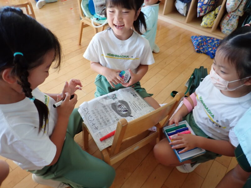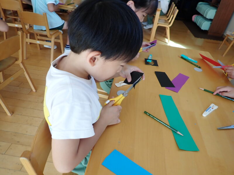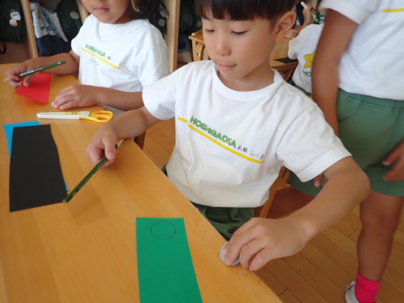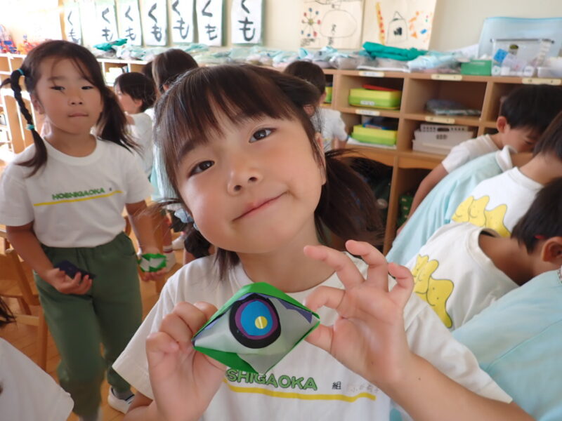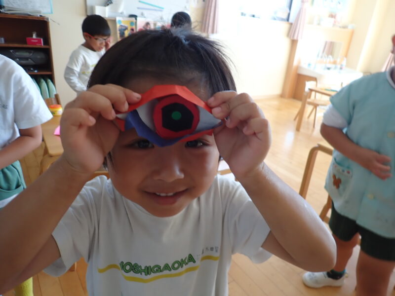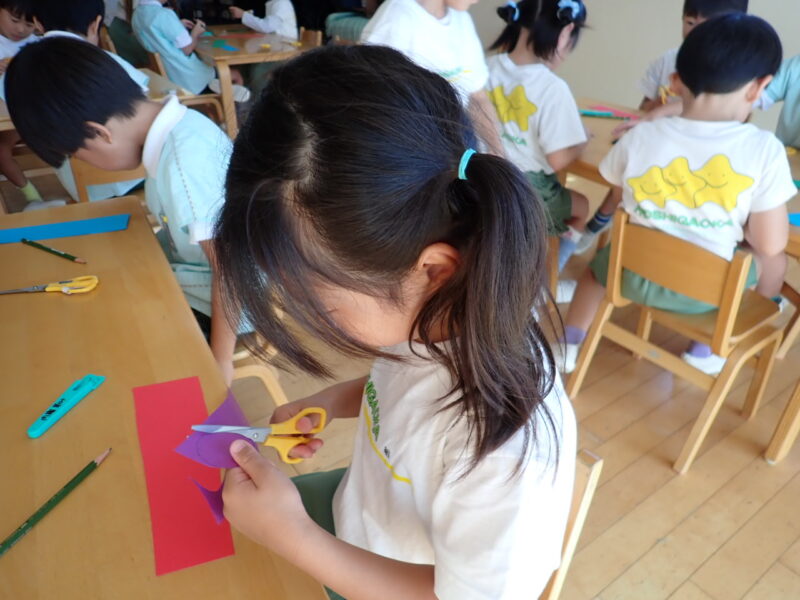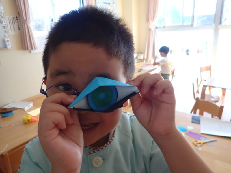 ちょっと難しい所は、線を引いてあげて・・・隣の机を見て、折り方をチェックしていたおともだち、「先生こうでしょ!」とどんどん進めていました。