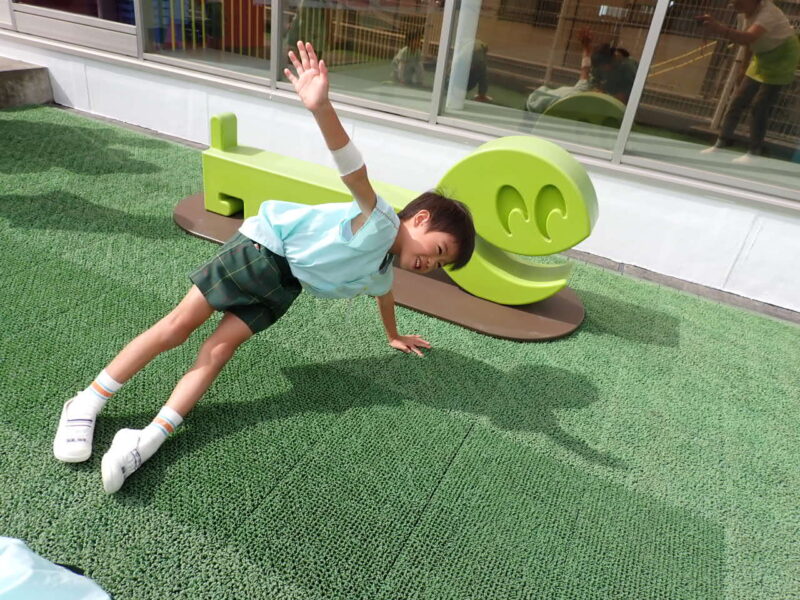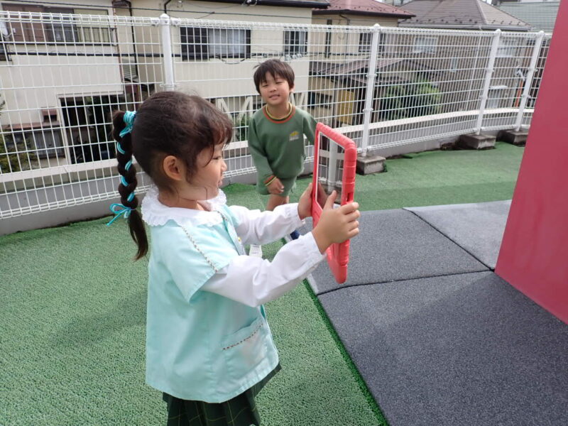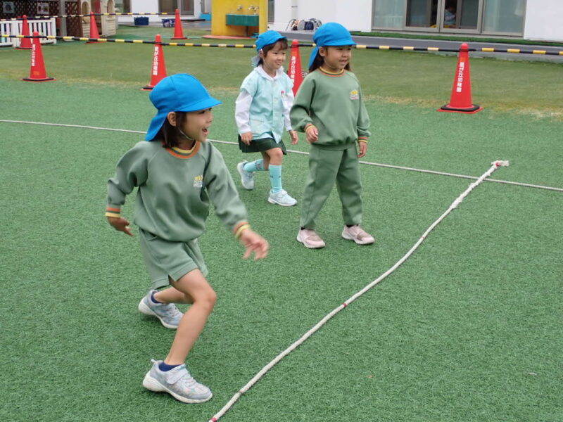 小雨模様でしたが、朝のお外遊びへ元気に出発!虎組さんと一緒に遊び始めると、ドッジボール派とリレー派に分かれてどちらも引かず・・・。時間を決めてやることになり、ドッジボール派がじゃんけんで勝ったので、まずは、ドッジボールから。