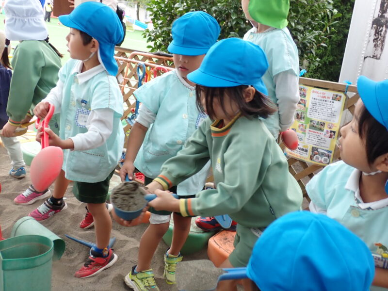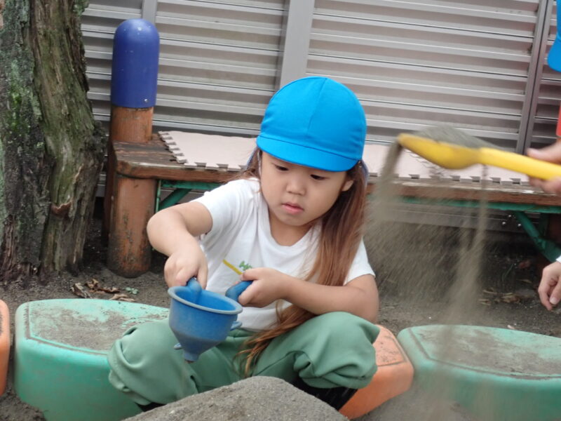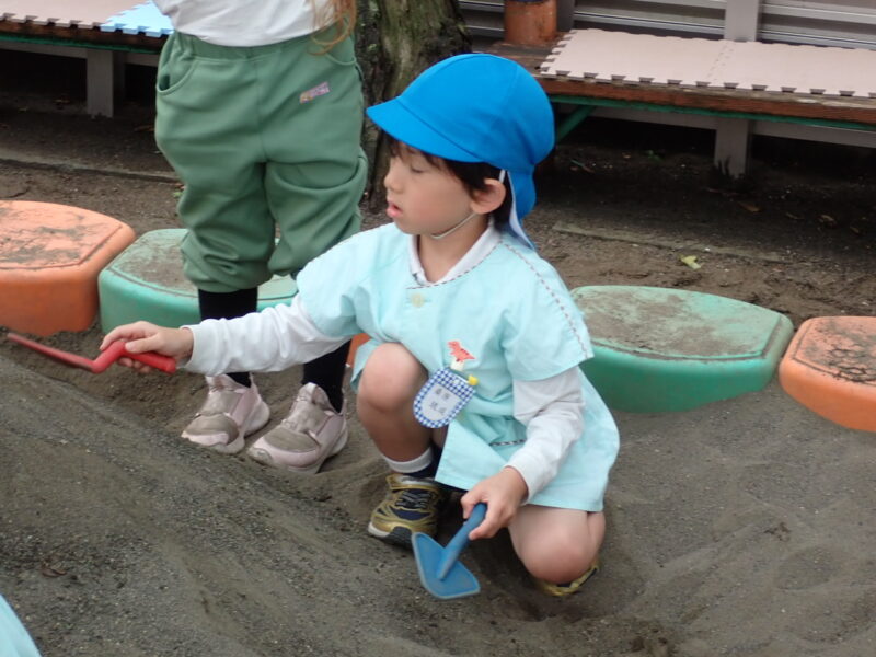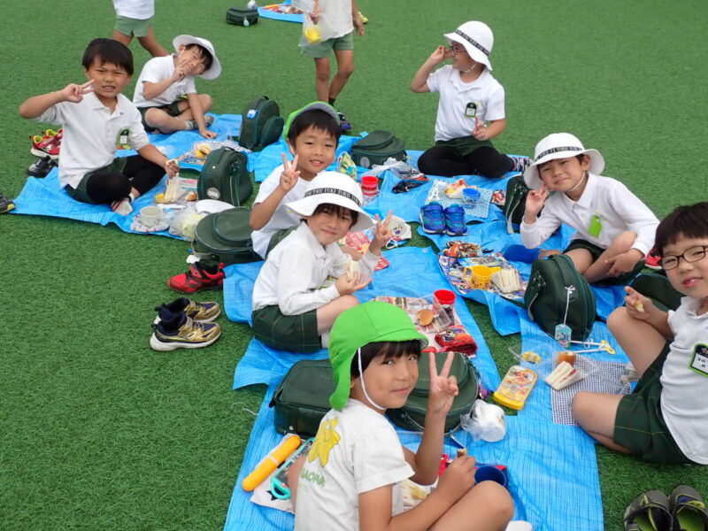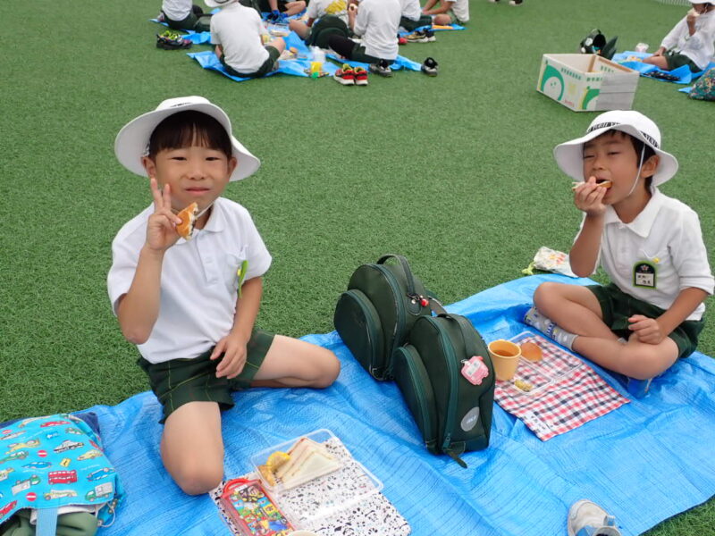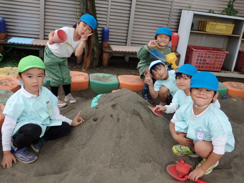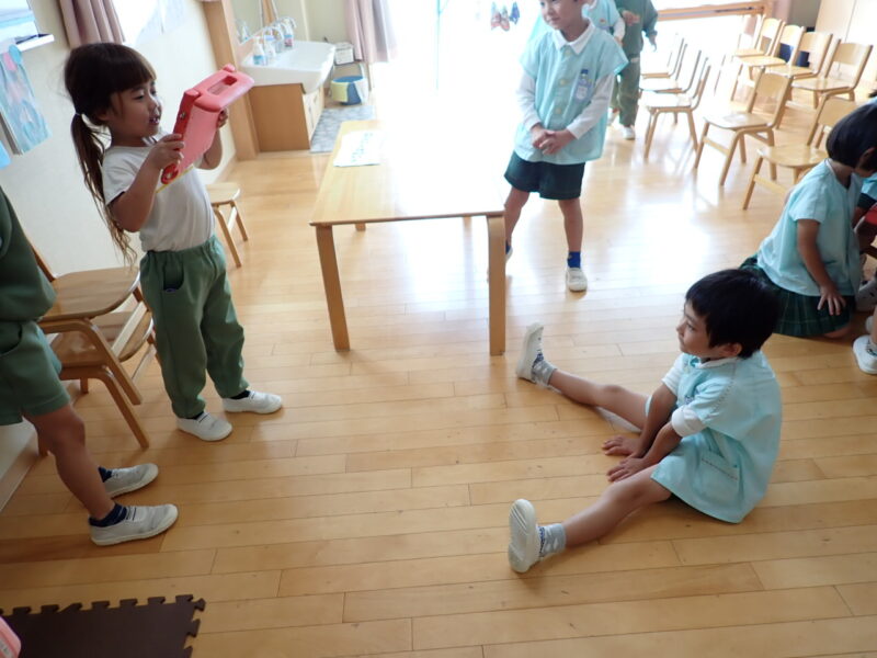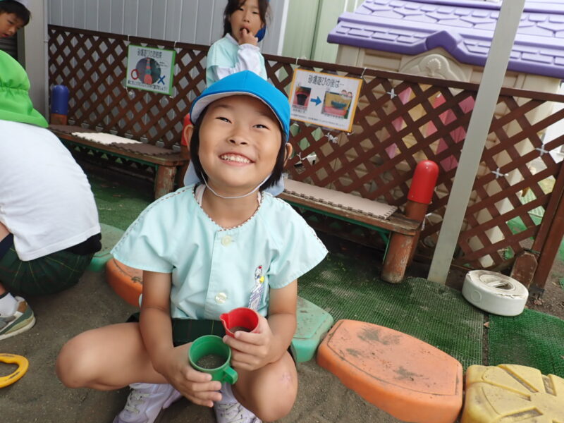 雨が心配でしたが、皆が園庭に出た時は、「暑いね!」と言うくらいに日差しが出て来ました。久しぶりの外での給食💛。帰りの支度を済ませてゆっくり食事と遊びの時間を過ごしました。