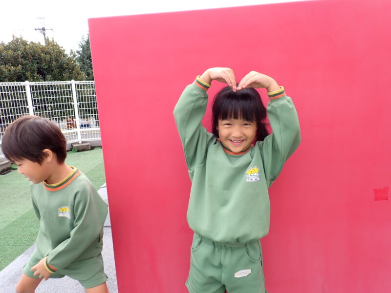 ハートを作りたいグループ。自然にハートフルな笑顔に。