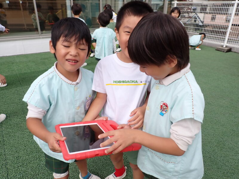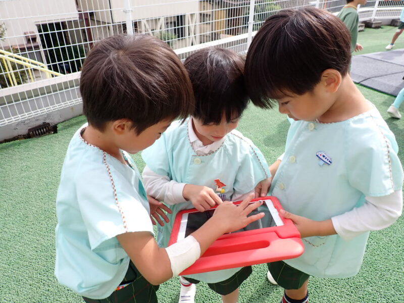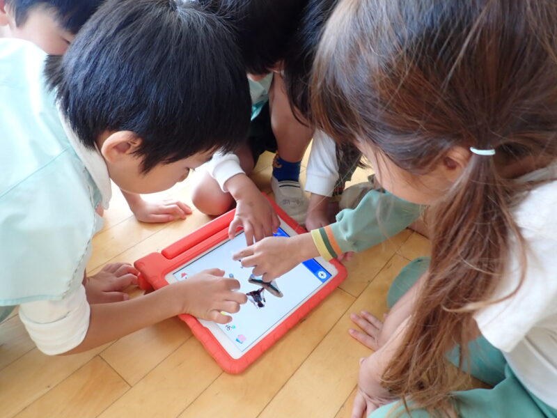 教室では、ipadのアプリ「チョキペタ」を使って、遊びました。