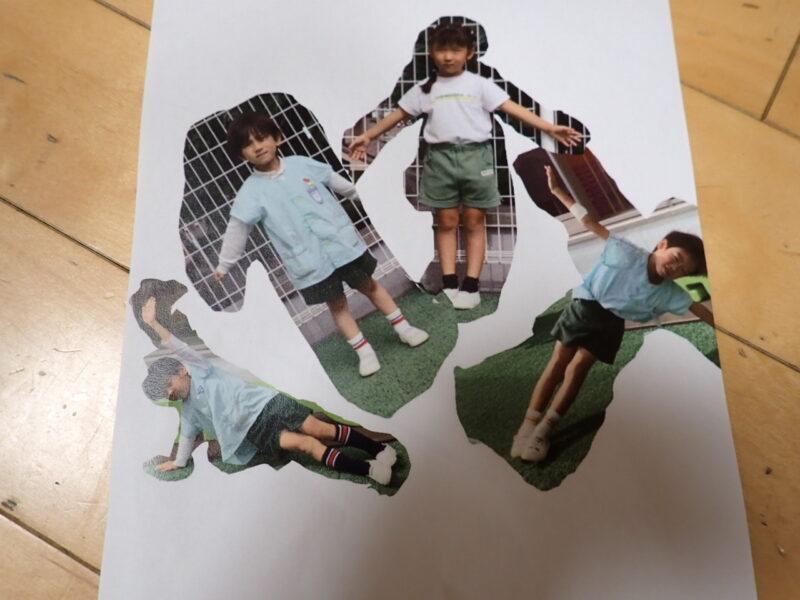 写真を撮ったら切り取って、合成できるあそび。どんな形を作りたいか考えて、グループに分かれて撮影、「チョキチョキ」「ペタペタ」始まり~。