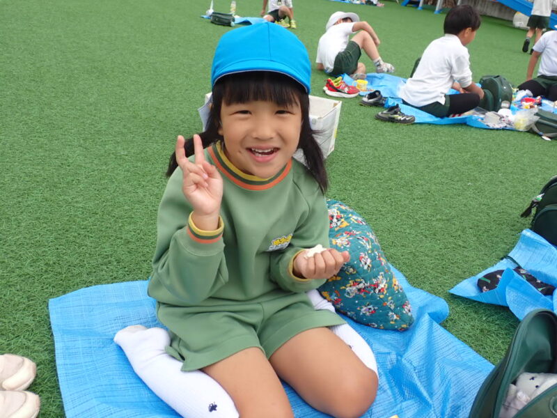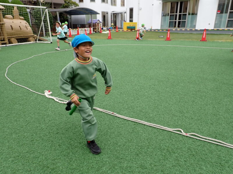 他の学年のお友だちも出て来たので終了。クラス関係なく自分の組帽子のお友だちを、一人ひとり声援して、運動会とは違う楽しいリレーでした。