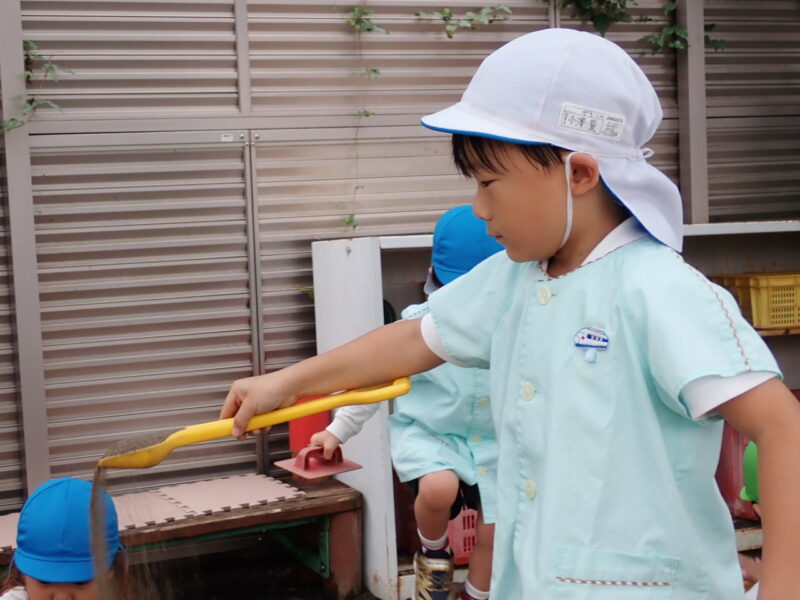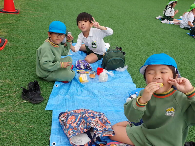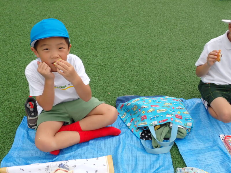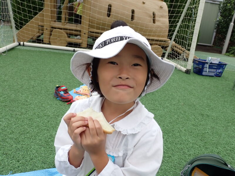 雨が心配でしたが、皆が園庭に出た時は、「暑いね!」と言うくらいに日差しが出て来ました。久しぶりの外での給食💛。帰りの支度を済ませてゆっくり食事と遊びの時間を過ごしました。