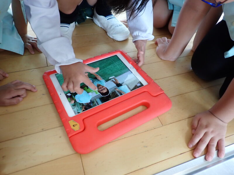 教室では、ipadのアプリ「チョキペタ」を使って、遊びました。