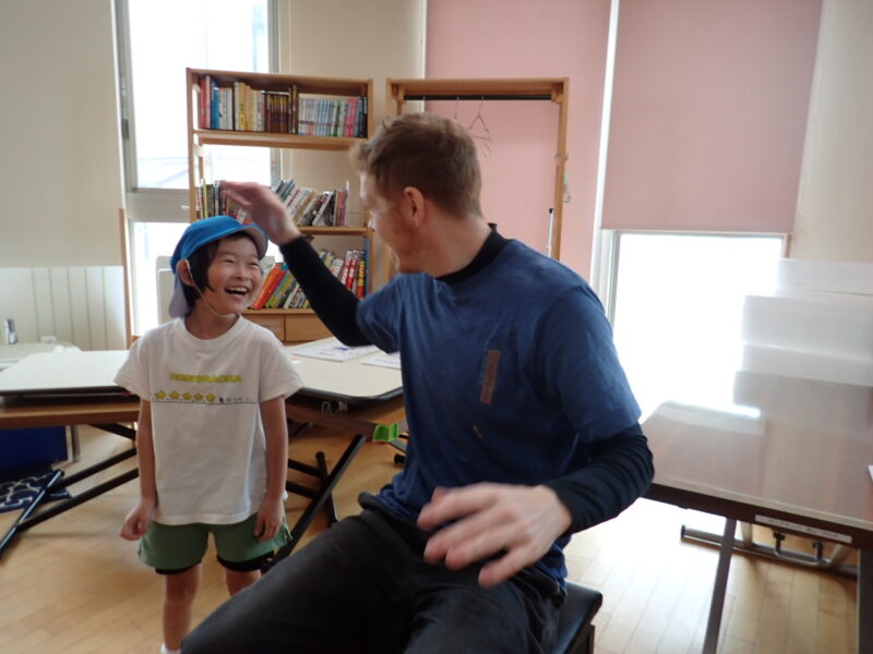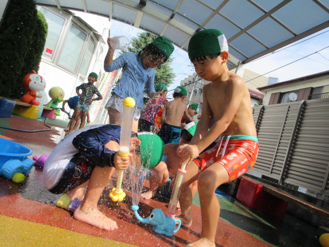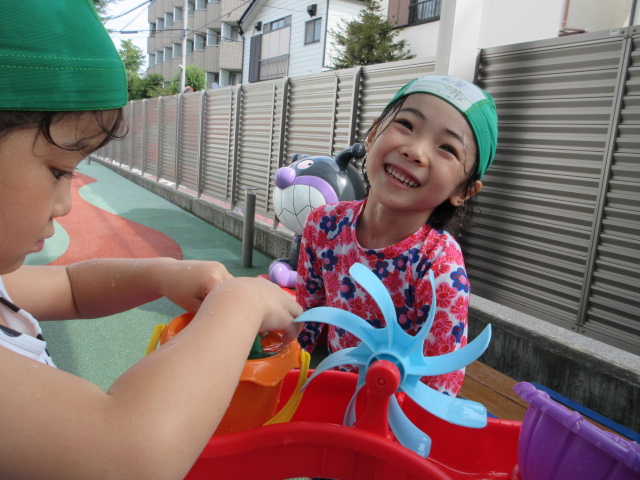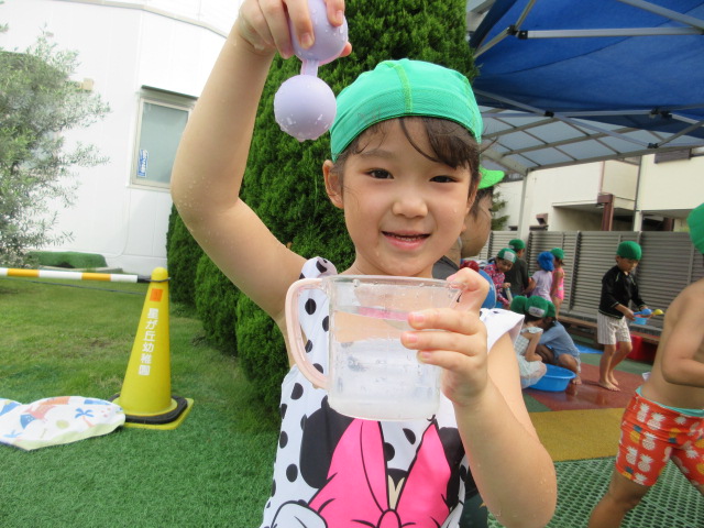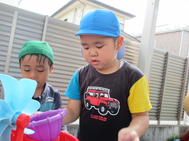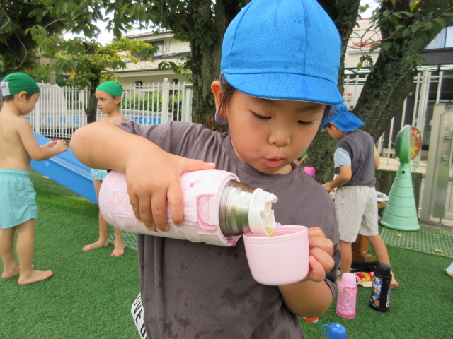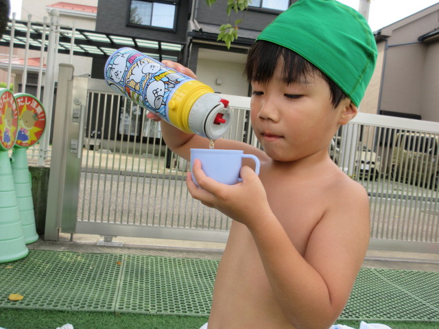 水分もしっかり摂って、日陰で遊びました。(三枝先生が撮って下さいました。)